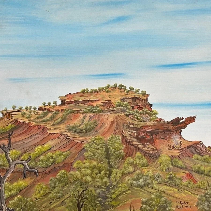 Visit Studio 1 between 12.30 - 2.30pm to see Western Australia’s colours and landscapes brought to life in paintings by Noongar Yued Ballardong artist, Clive Ryder.
